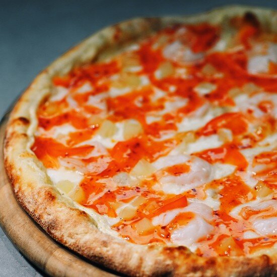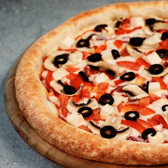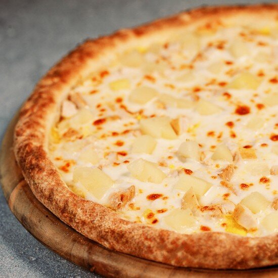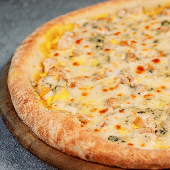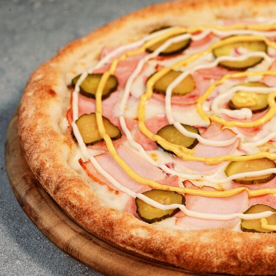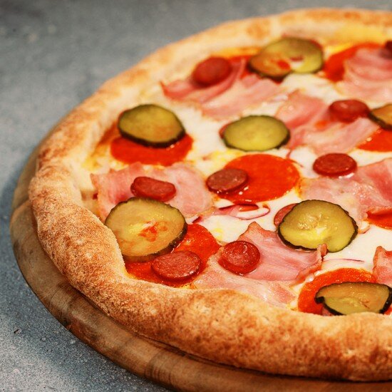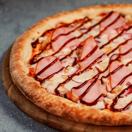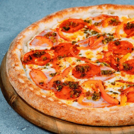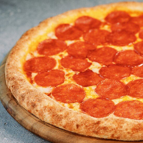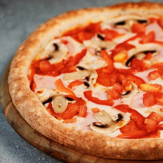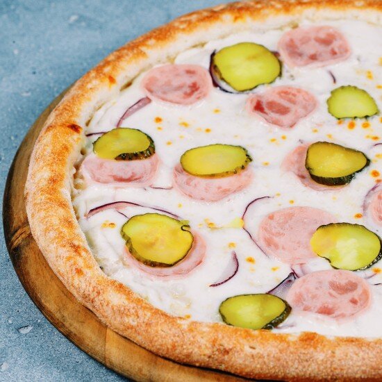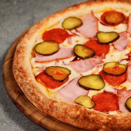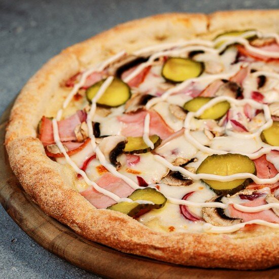 Грибной соус, сыр "Моцарелла", пепперони, шампиньоны, грибной соус.