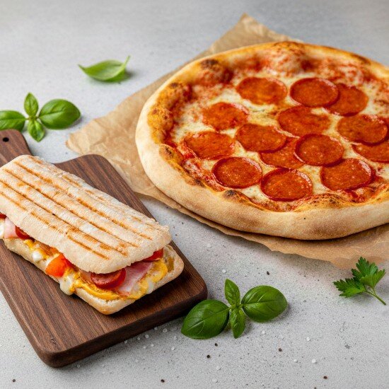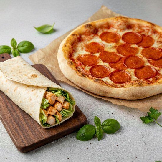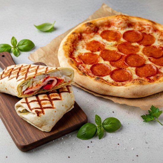 Итоговая стоимость зависит от выбранной пиццы и салата: