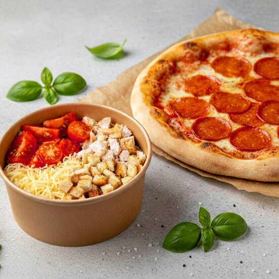 • Если выбрана пицца с морепродуктами из категории за 18 руб — доплата +3,20 руб, итоговая цена за комбо — 22,40 руб.